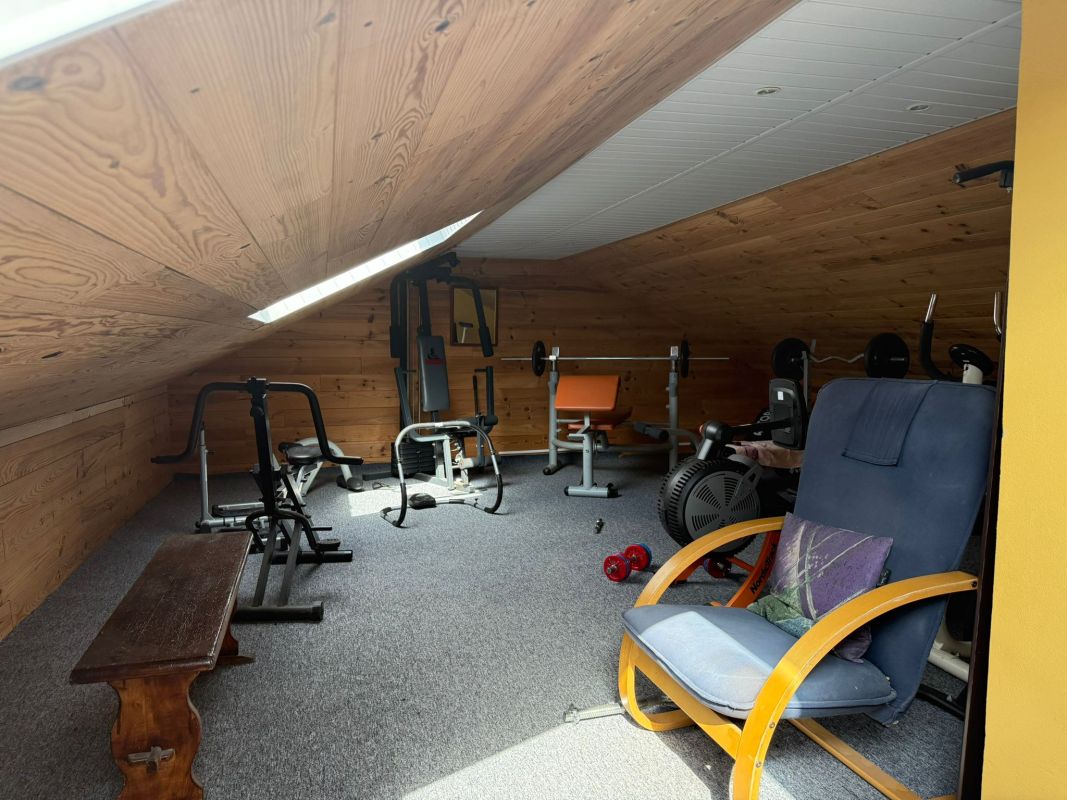 Au troisième niveau : deux chambres, une salle de sport avec douche et toilette, un toilette séparé