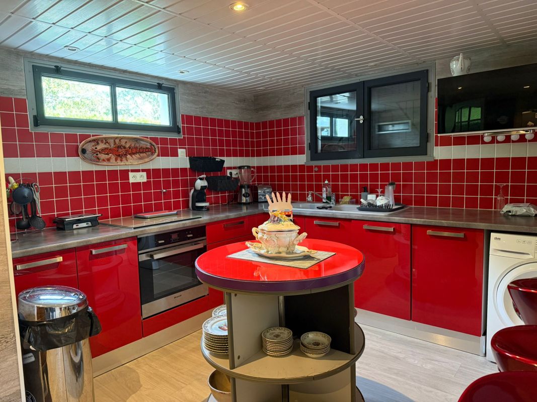 Au premier niveau : une magnifique entrée donnant sur une cuisine fermée, une véranda, une grande pièce de vie.