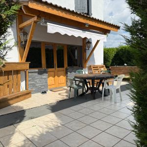 Au rez-de-chaussée, vous découvrirez un appartement de type 2 comprenant une entrée, une cuisine meublée et équipée ouverte sur le séjour, une salle d'eau avec toilette, une chambre, une terrasse, en deuxième partie, nous avons un grand garage, avec coin chaufferie.