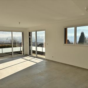 Situés à Lovagny, à 15 minutes en voiture d'Annecy et Rumilly, nous vous proposons à la vente un Type 4 en duplex de 103 m2 avec jardin privatif de 240 m2. Celui-ci se compose au rez-de-chaussée d'une entrée avec placards, d'une cuisine ouverte sur le séjour donnant accès au balcon et d'un cellier. A l'étage, on retrouve deux chambres, une salle de bains, des toilettes séparées et une suite parentale avec salle d'eau.